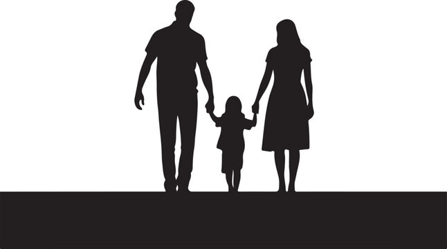 Mom Dad and Daughter Holding Hand SVG | Black (3401813)