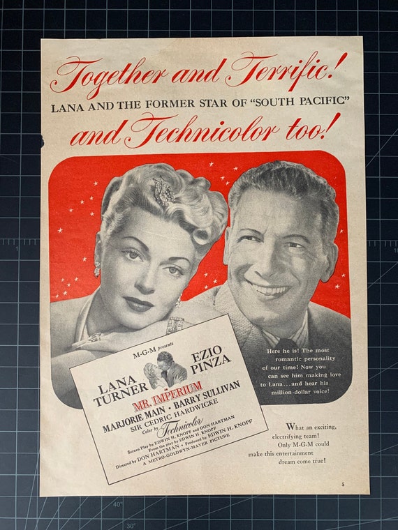 1951 Ad Movie Mr. Imperium Lana Turner Ezio Pinza Don Hartman MGM Film YMS2