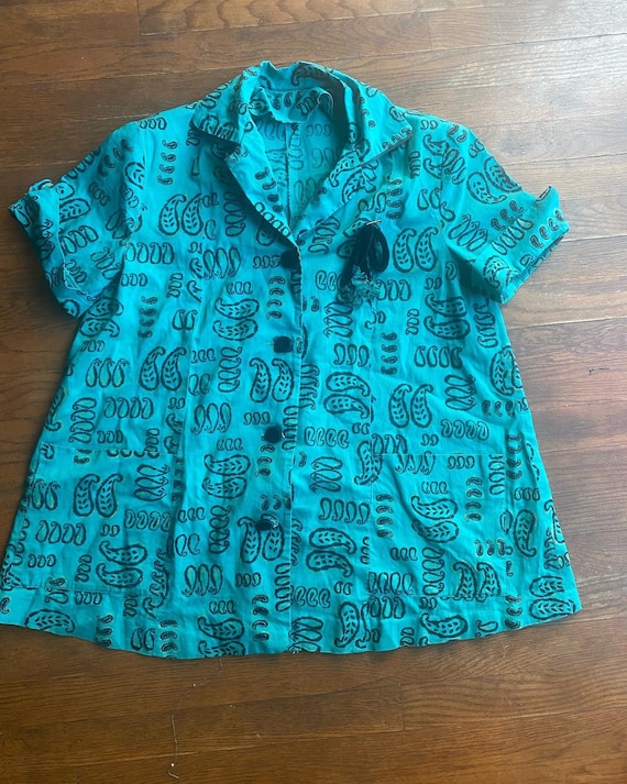 1950s 50s Vintage Green BLK Paisleys Swing Hostess Velvet Buttons Maternity L Top Blouse Made in Hollywood - Etsy